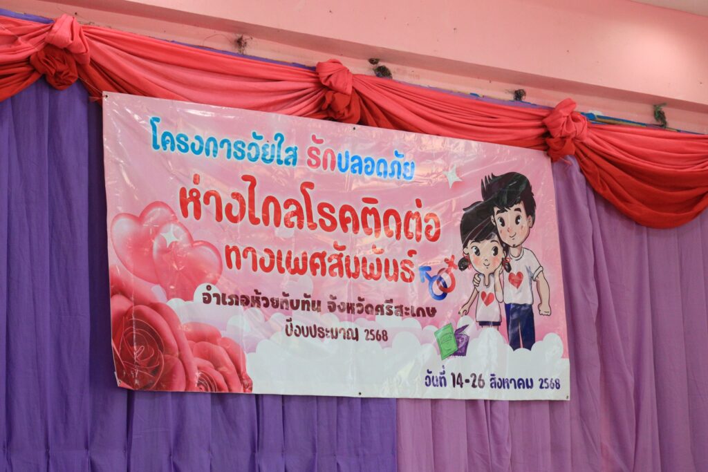 ในวันที่ 18 สิงหาคม 2568 โรงพยาบาลห้วยทับทัน ได้จัดอบรม “โครงการวัยใส รักปลอดภัย ห่างไกลโรคติดต่อทางเพศสัมพันธ์” ณ หอประชุมโรงเรียนผักไหมวิทยานุกูล ให้กับนักเรียนระดับชั้น ม.1, ม.2 และ ม.3 โดยมีวัตถุประสงค์เพื่อส่งเสริมความรู้ ความเข้าใจ และทัศนคติที่ถูกต้องด้านสุขภาพทางเพศ ตลอดจนการป้องกันโรคติดต่อทางเพศสัมพันธ์ และการปลูกฝังพฤติกรรมที่เหมาะสมและปลอดภัยในกลุ่มเยาวชน ทั้งนี้ โรงเรียนผักไหมวิทยานุกูลขอขอบพระคุณผู้อำนวยการโรงพยาบาลห้วยทับทัน และคณะวิทยากรที่ให้เกียรติมอบความรู้ในครั้งนี้