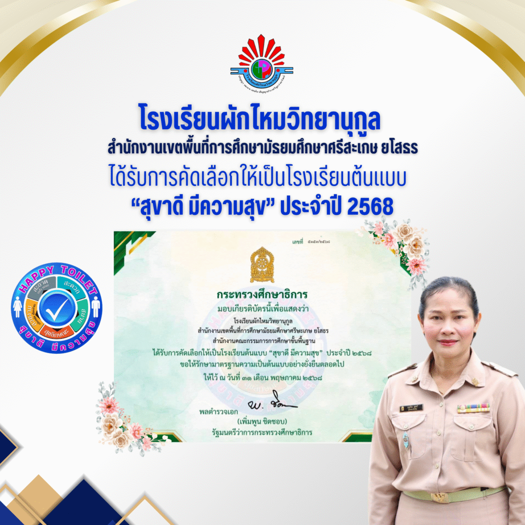 โรงเรียนผักไหมวิทยานโรงเรียนผักไหมวิทยานุกูล ได้รับการคัดเลือกให้เป็นโรงเรียนต้นแบบ “สุขาดี มีความสุข” ประจำปี 2568By admin / 29 มิถุนายน 2025